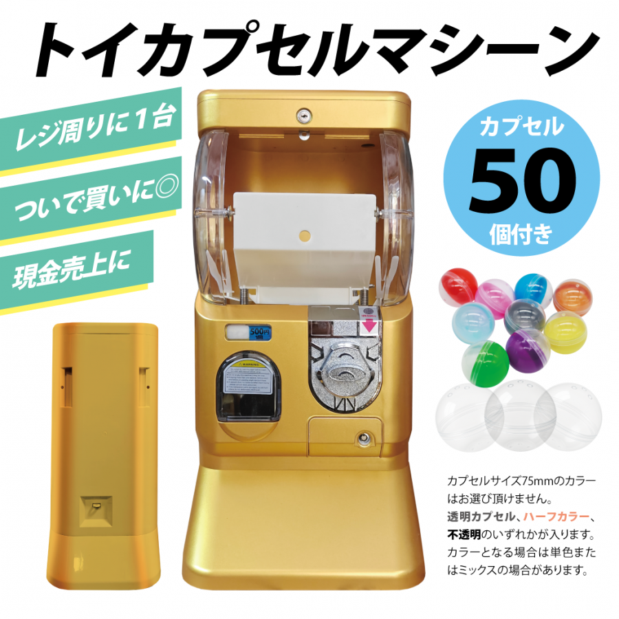 対応カプセルサイズ:直径45mm(200個)または直径75mm(50個)に対応